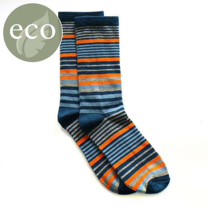Pom - Men’s blue/orange variety striped single pair bamboo socks