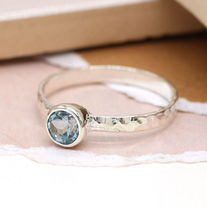 Pom - Blue Topaz Sterling Silver Hammered Band Ring - Size 58 (large)
